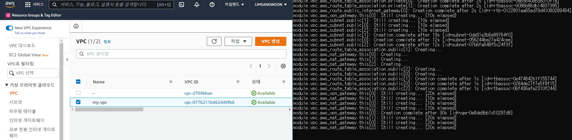 실행과 동시에 리소스가 생성되는 것을 알 수 있다